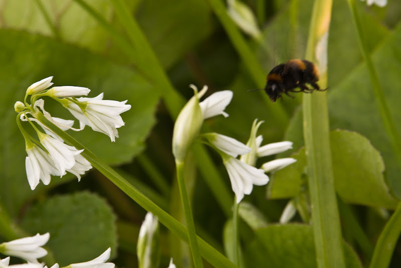 А этот подлый шмель отвлек кое-кого от фотографирования замечательного беленького цветуечка неизвестной породы. В общем непонятно что, и цветуечек не сфоткался и шмель тоже.